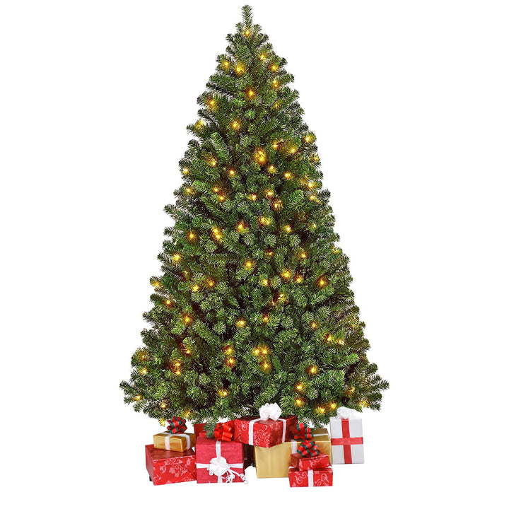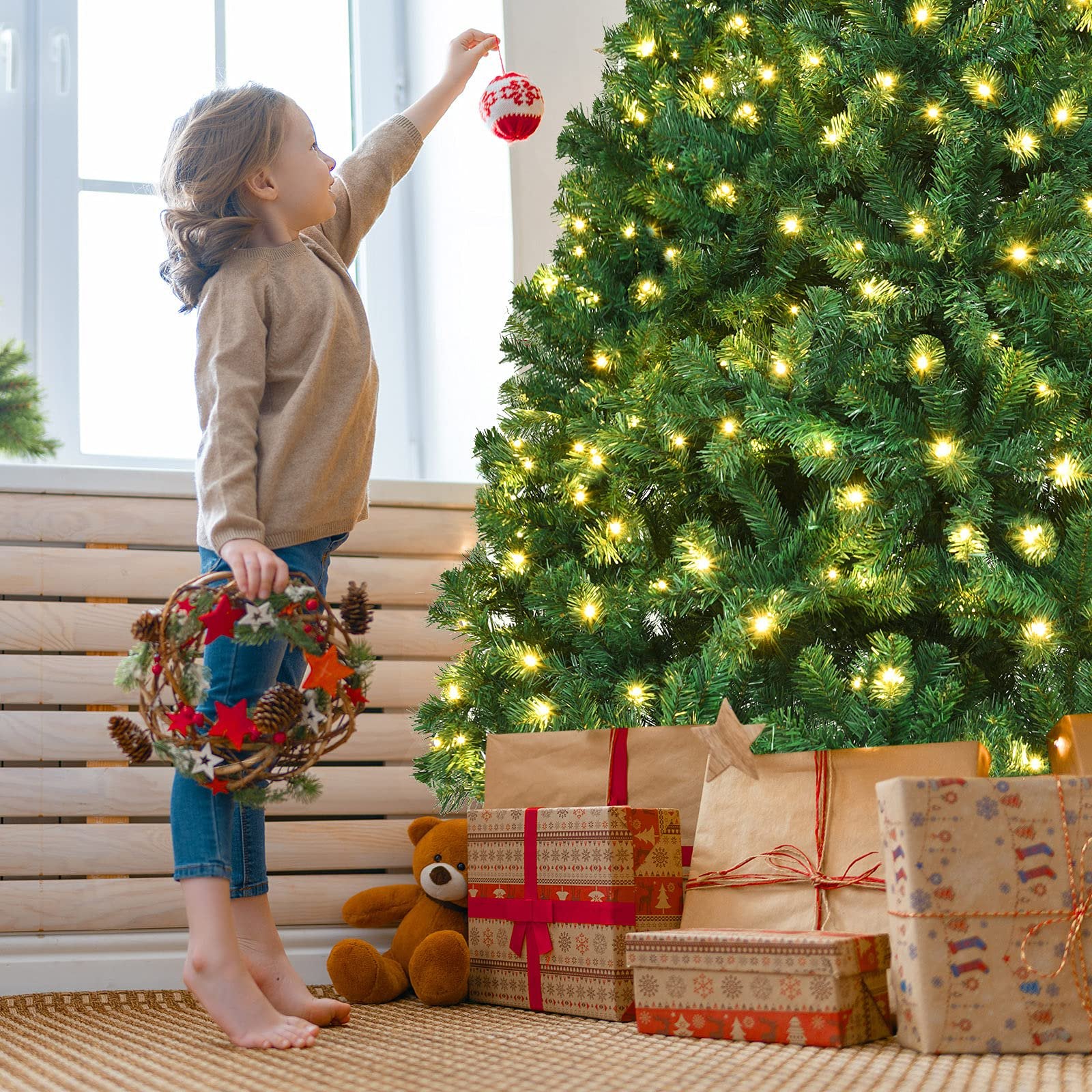 Celebrate the season effortlessly with this 7.5FT Pre-Lit Christmas Tree. Featuring 400 warm white LED lights, realistic PVC branches, a sturdy metal stand, and an easy hinged design, this tree brings natural charm and holiday joy to your home year after year.