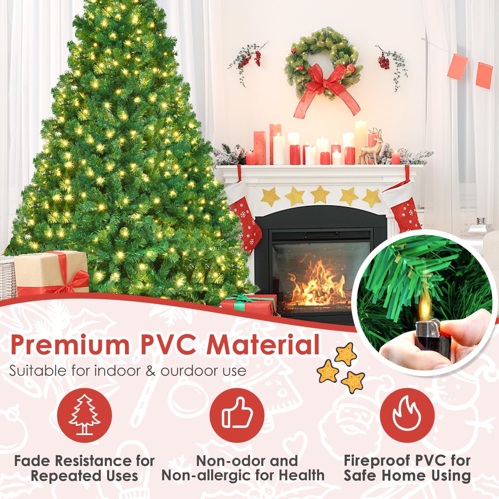 Vebreda 7.5FT Pre-Lit Artificial Christmas Tree with 400 Warm White LED Lights, Hinged Branch Design, Eco-Friendly PVC Needles & Foldable Metal Stand for Home, Office & Holiday D¨¦cor