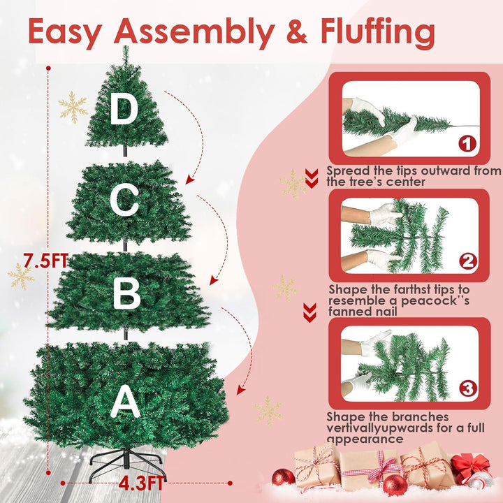 1 ¡Á 7.5FT Pre-Lit Christmas Tree (4 hinged sections)
