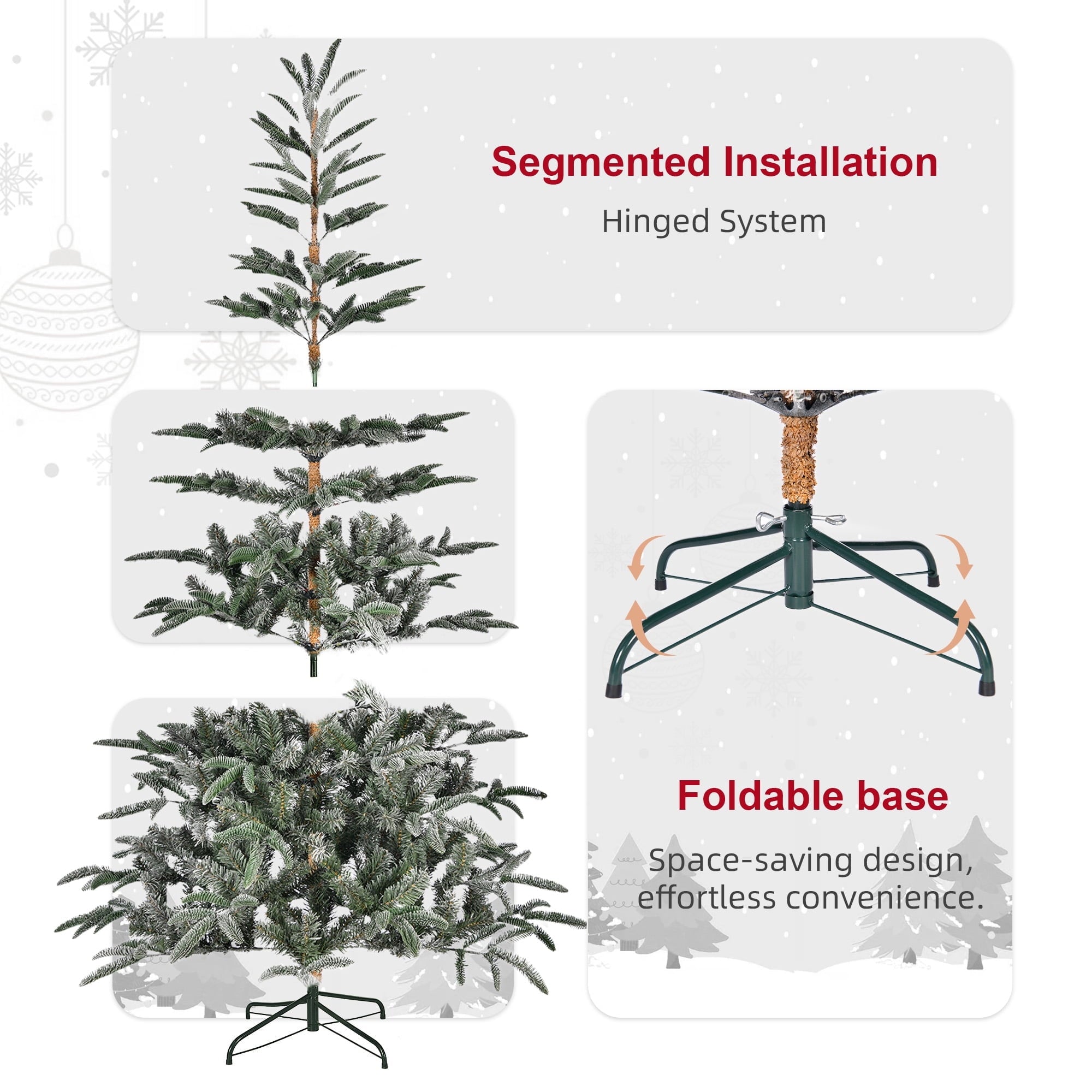 ?? Easy Setup with Hinged Branches ¨C Three-section structure with hinged branches makes assembly and fluffing quick and hassle-free.