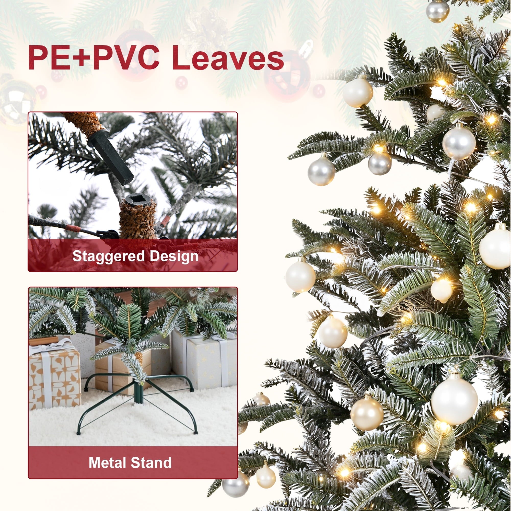 ?? Realistic Layered Fir Look ¨C Designed with a natural layered shape and 1000 mixed PE & PVC branch tips for a full, lifelike appearance.