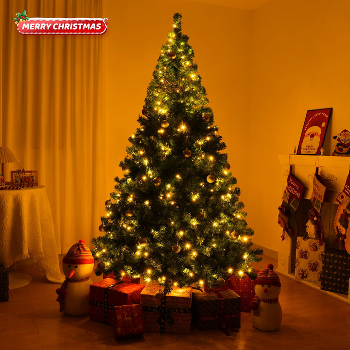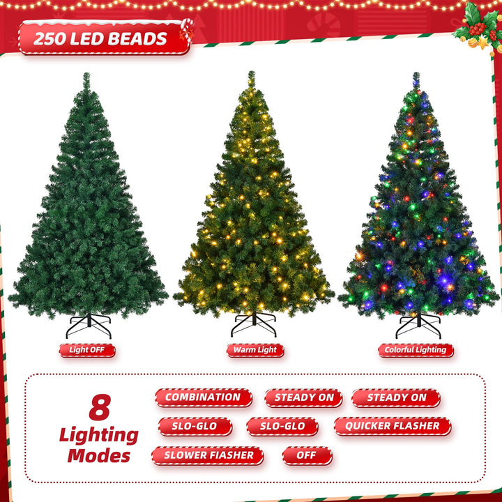 Brighten your holidays with this 6FT Pre-Lit Christmas Tree, featuring 250 colorful LED lights, 8 lighting modes, and 1060 full branch tips. Easy to set up with a hinged design and sturdy metal stand, this tree brings warmth and cheer to your home all season long.