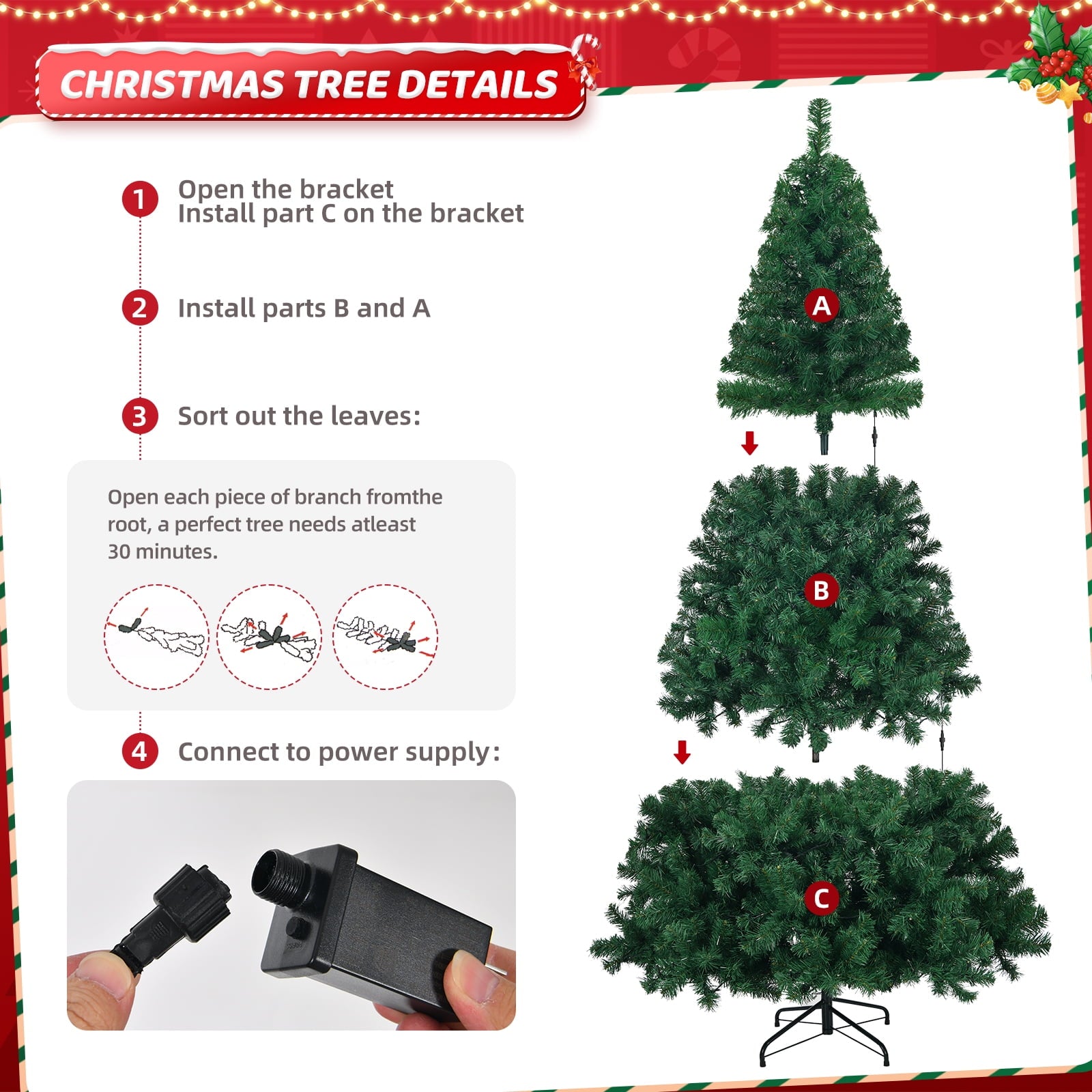 1 ¡Á 6FT Pre-Lit Christmas Tree (3 hinged sections)
