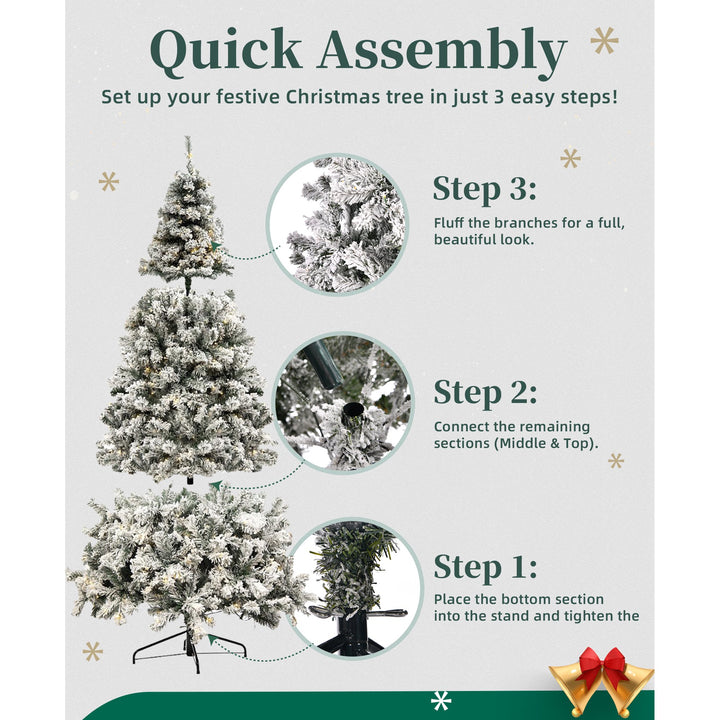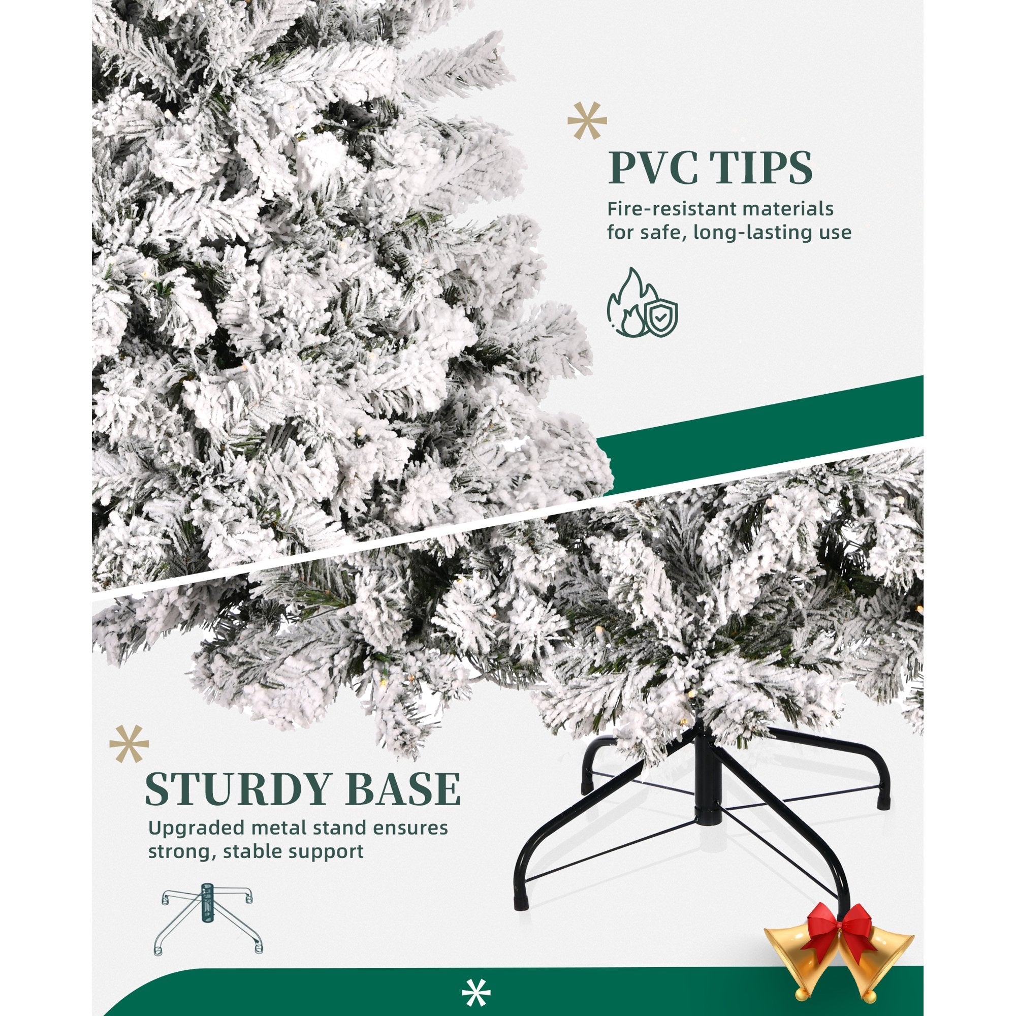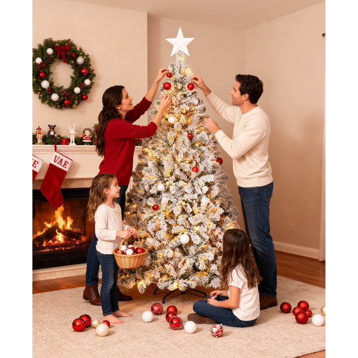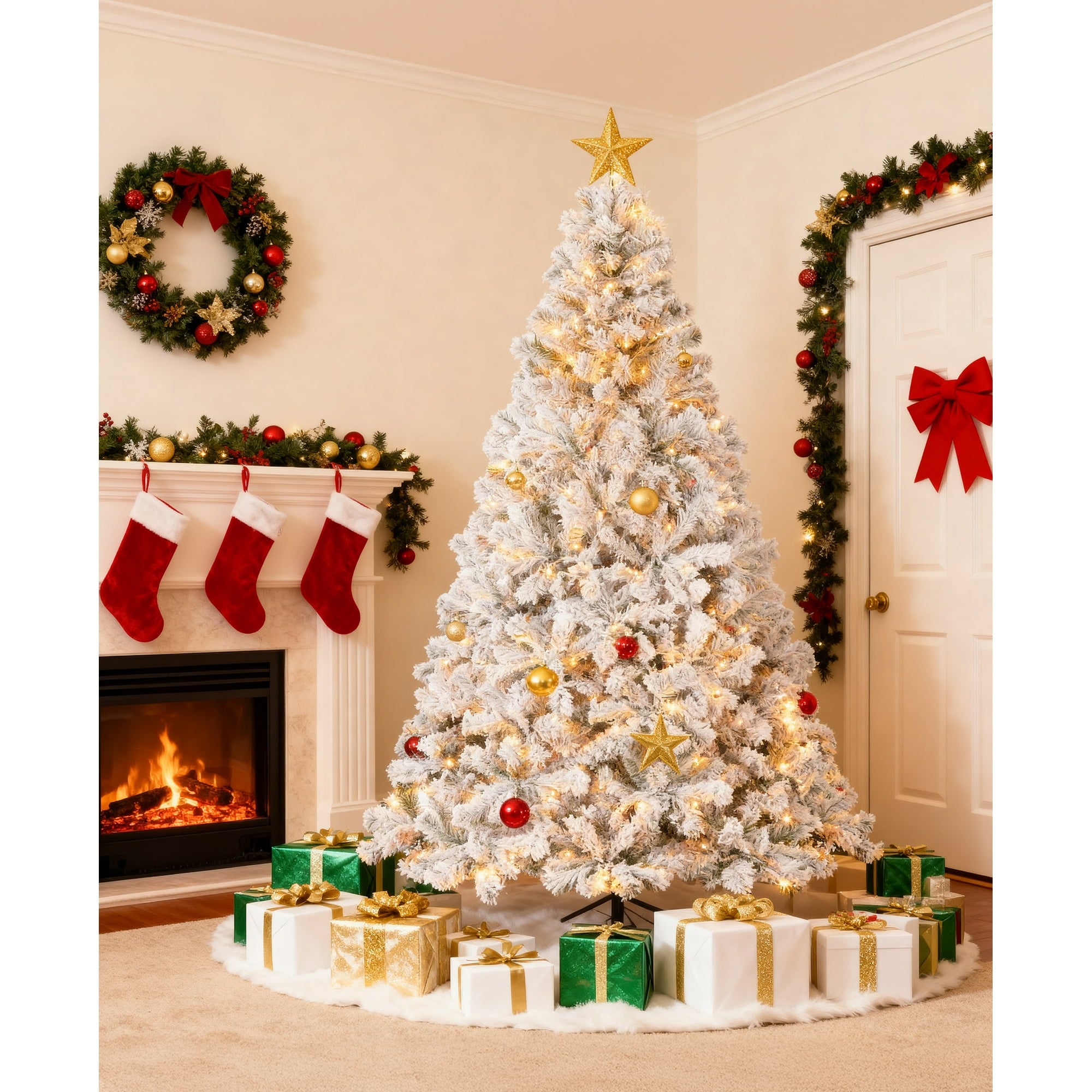 Vebreda 6ft Pre-Lit Premium Snow Flocked Hinged Artificial Christmas Tree, Indoor White