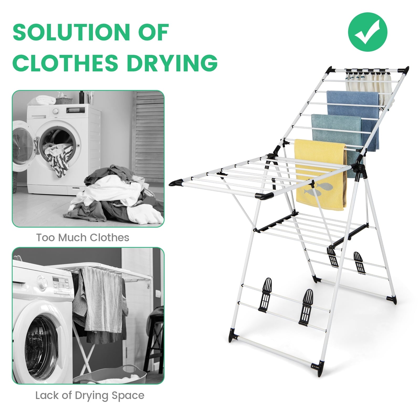 Spacious & Classified Drying Space: 2-layer design gives you ample space for storage. Meanwhile 20 hanging rails provide you with sufficient space for hanging all your clothes. Moreover, there are 4 shoe racks at the bottom, which allows you to dry up all kinds of clothes and shoes at once.