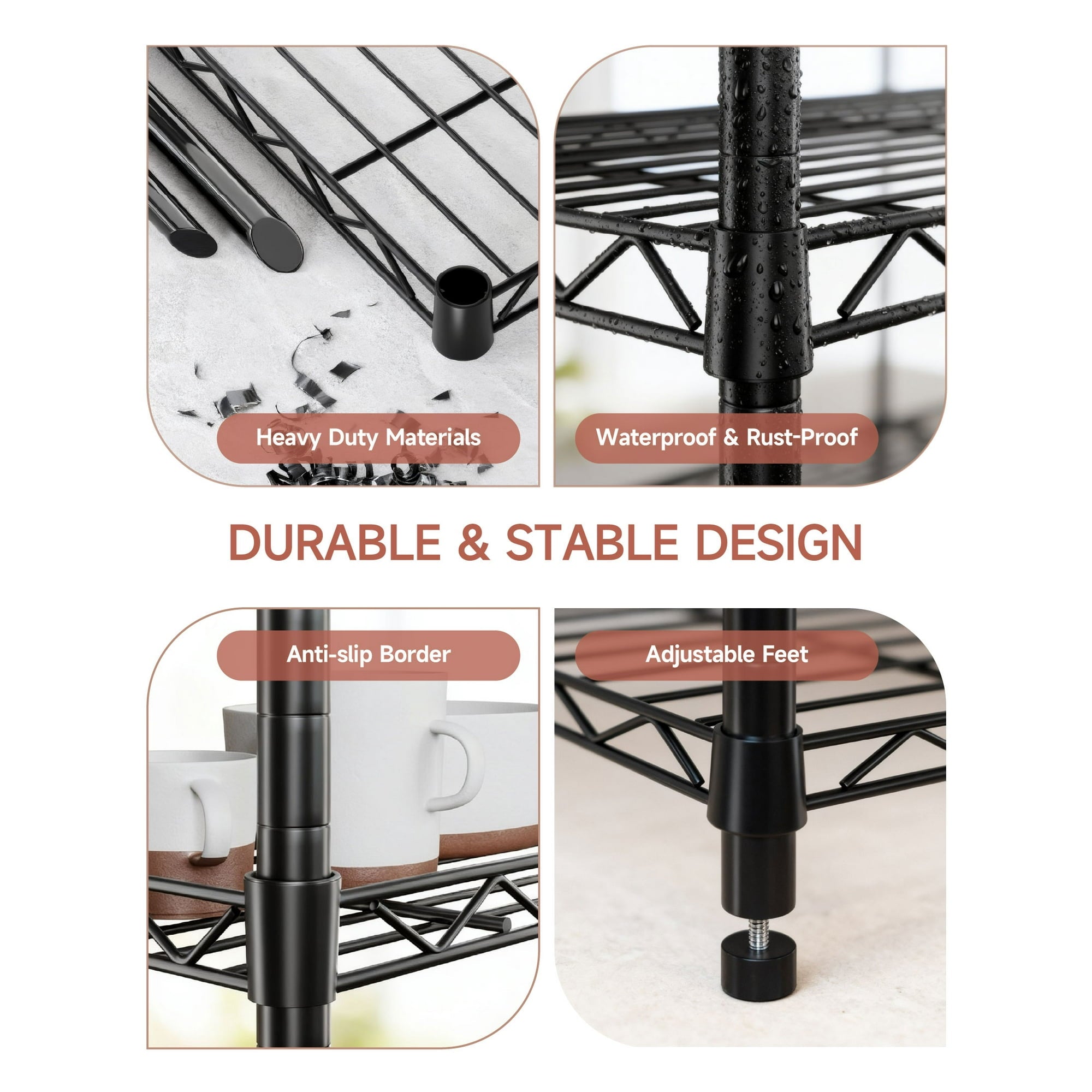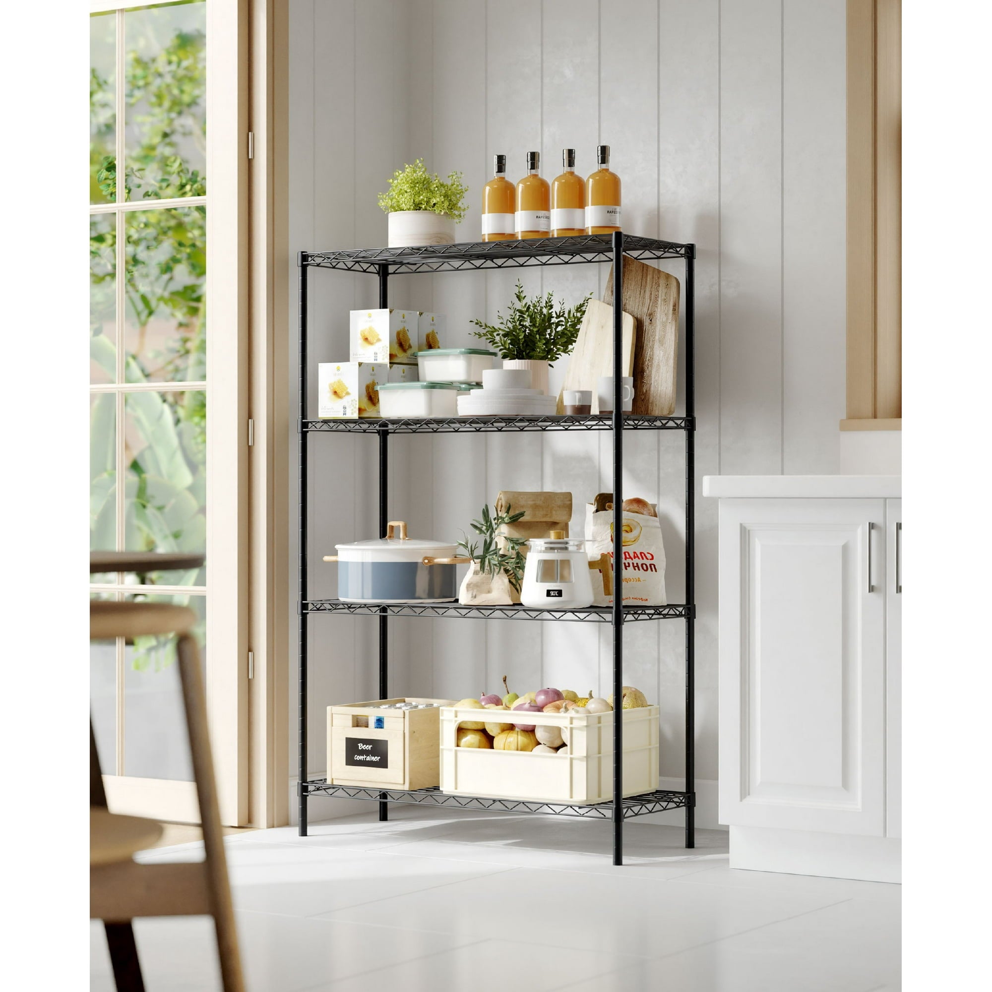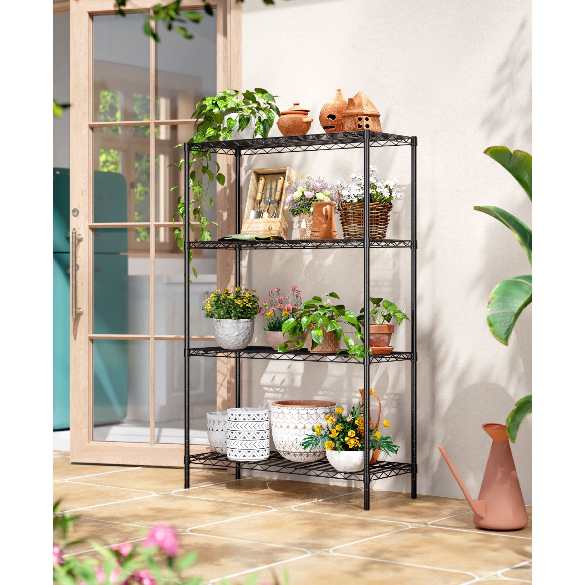 Slim 4-tier design maximizes vertical storage while saving floor space.