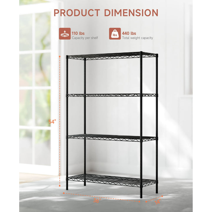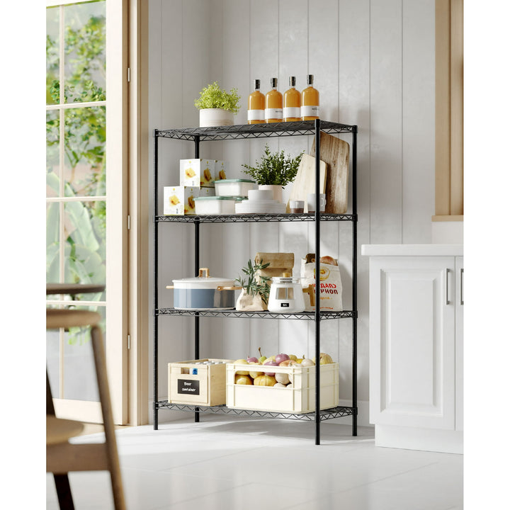 Stay organized with the Vebreda 4-Tier Adjustable Metal Storage Shelf. Made of heavy-duty steel with a rust-resistant black finish, it supports up to 440 lbs and features adjustable shelves for customizable storage. The slim vertical design saves space, while tool-free assembly makes setup quick and easy¡ªperfect for garages, kitchens, offices, and laundry rooms.