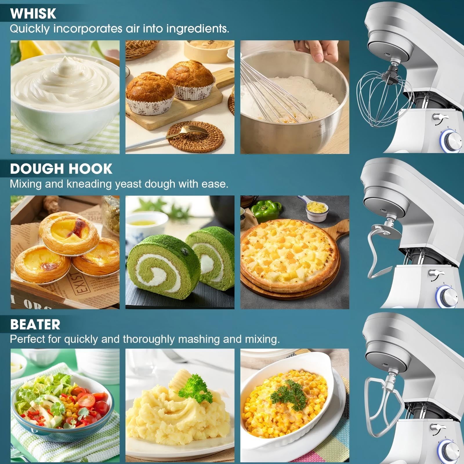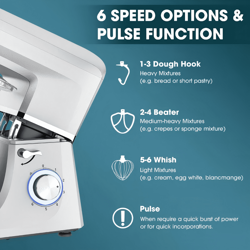 Upgrade your kitchen with this versatile stand mixer, now enhanced with durable aluminum dough hook, beater, and whisk for long-lasting performance. Designed with a convenient multi-function button and 6 adjustable speed settings, it easily adapts to a variety of ingredients and recipes. From everyday cooking to festive baking, it takes the hassle out of meal prep. A thoughtful holiday gift for moms, grandmas, spouses, or friends, this mixer makes busy kitchen schedules feel effortless.