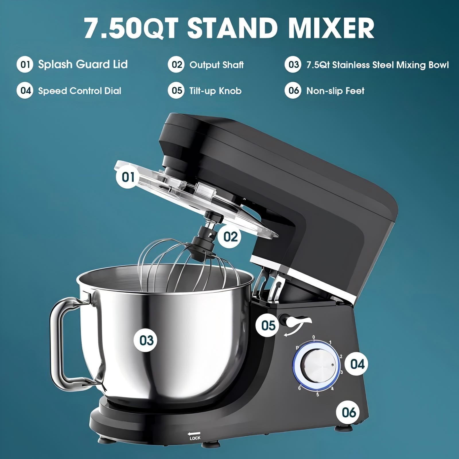 Vebreda 7.5Qt Stand Mixer 6-Speed Electric Food Mixer Kitchen Mixer for Daily Use Includes Beater Dough Hook Silver