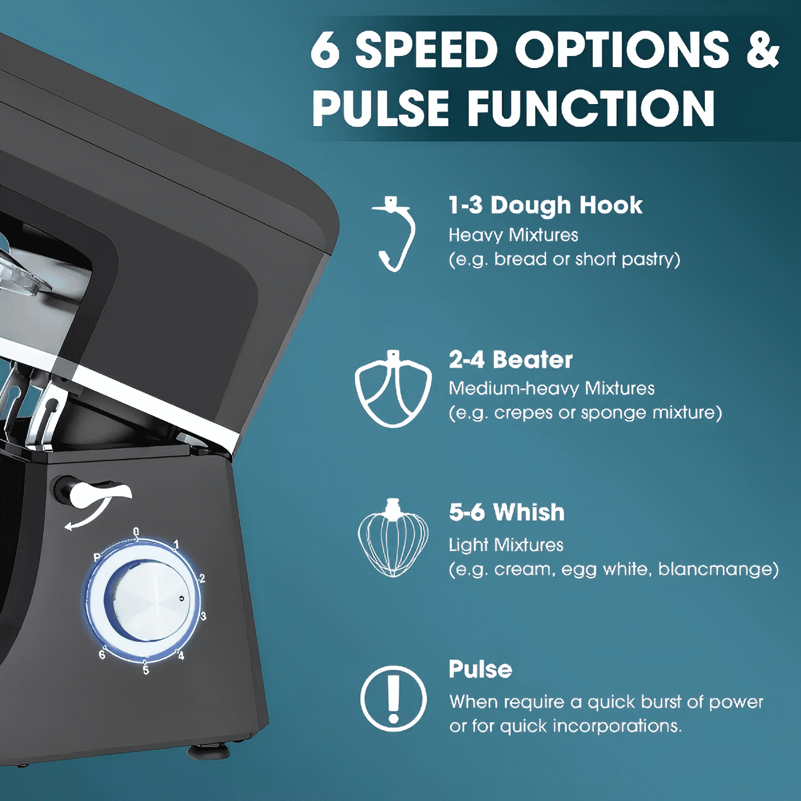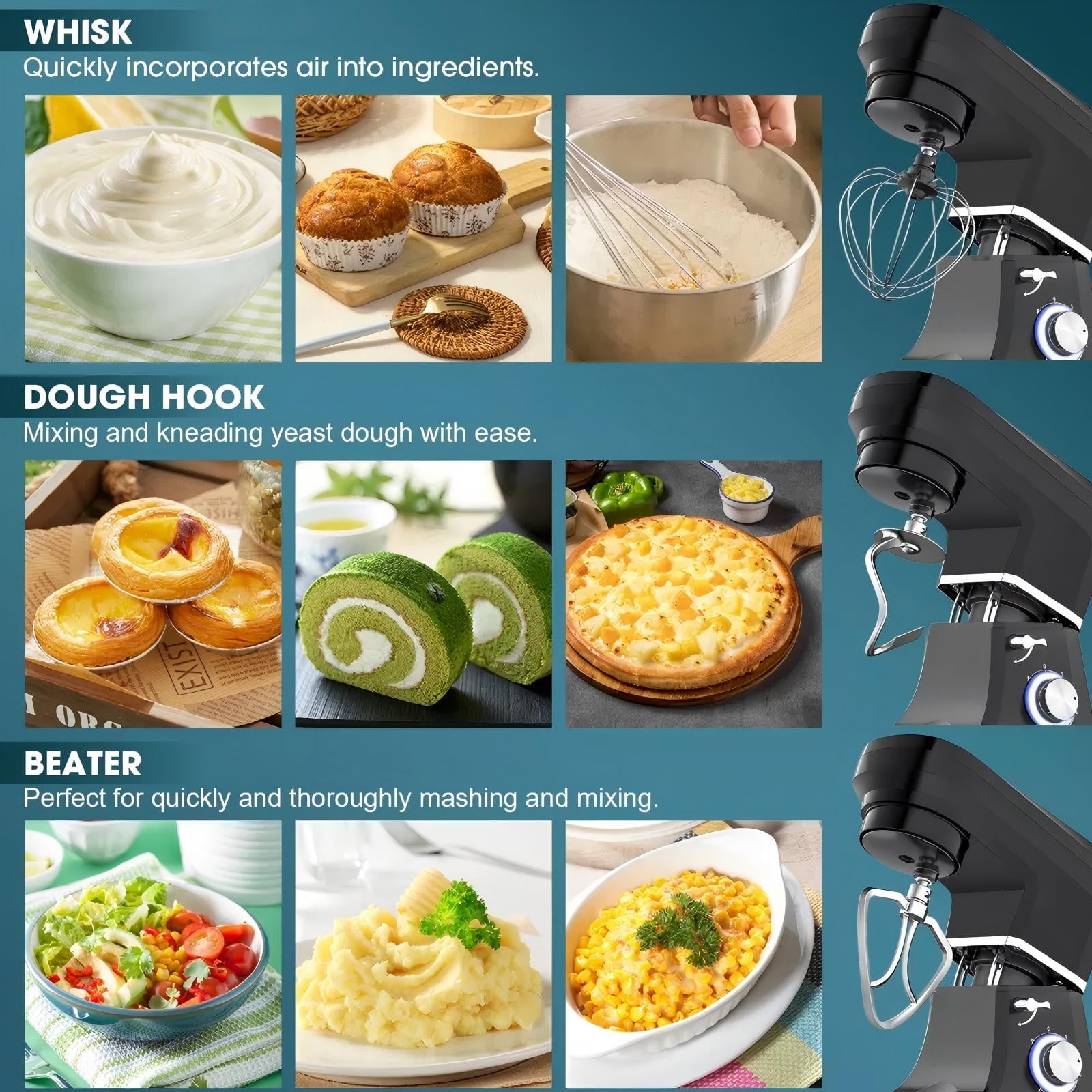 Upgrade your kitchen with this versatile stand mixer, now enhanced with durable aluminum dough hook, beater, and whisk for long-lasting performance. Designed with a convenient multi-function button and 6 adjustable speed settings, it easily adapts to a variety of ingredients and recipes. From everyday cooking to festive baking, it takes the hassle out of meal prep. A thoughtful holiday gift for moms, grandmas, spouses, or friends, this mixer makes busy kitchen schedules feel effortless.