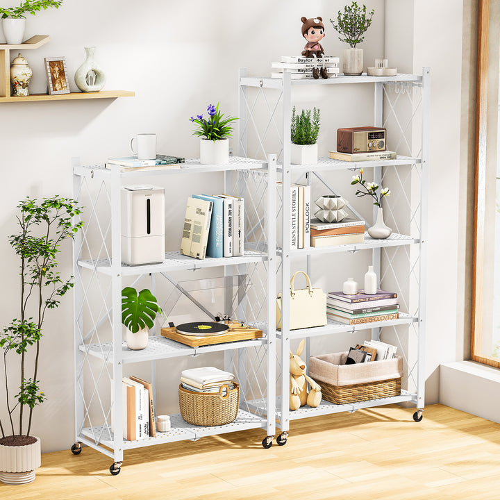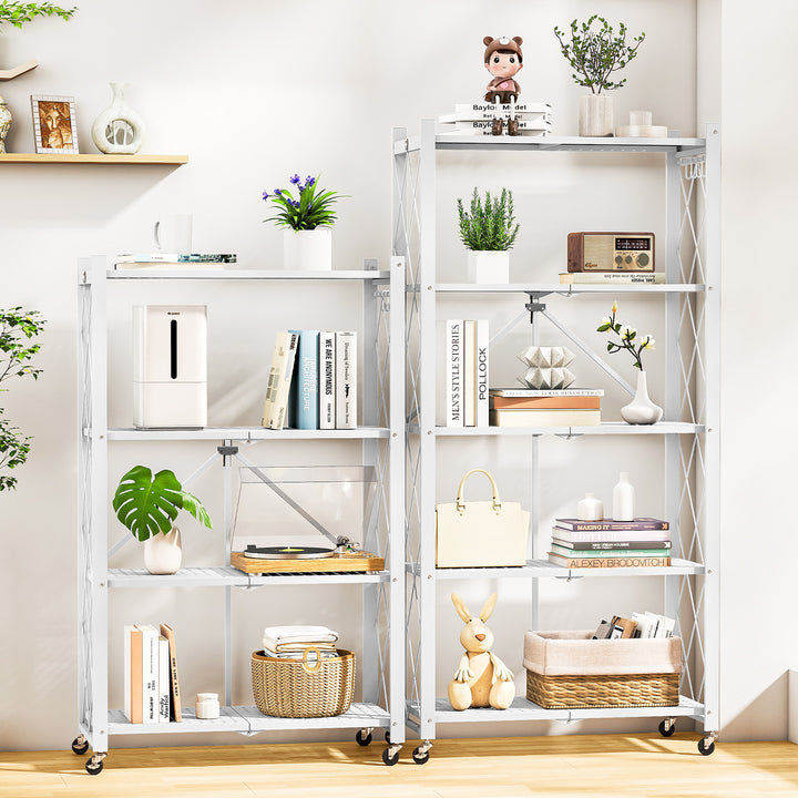 Vebreda 4-Tier Foldable Metal Storage Shelf with Wheels, No-Assembly Collapsible Shelving Unit, Heavy-Duty Rolling Organizer Rack for Kitchen, Garage, Pantry, and Office