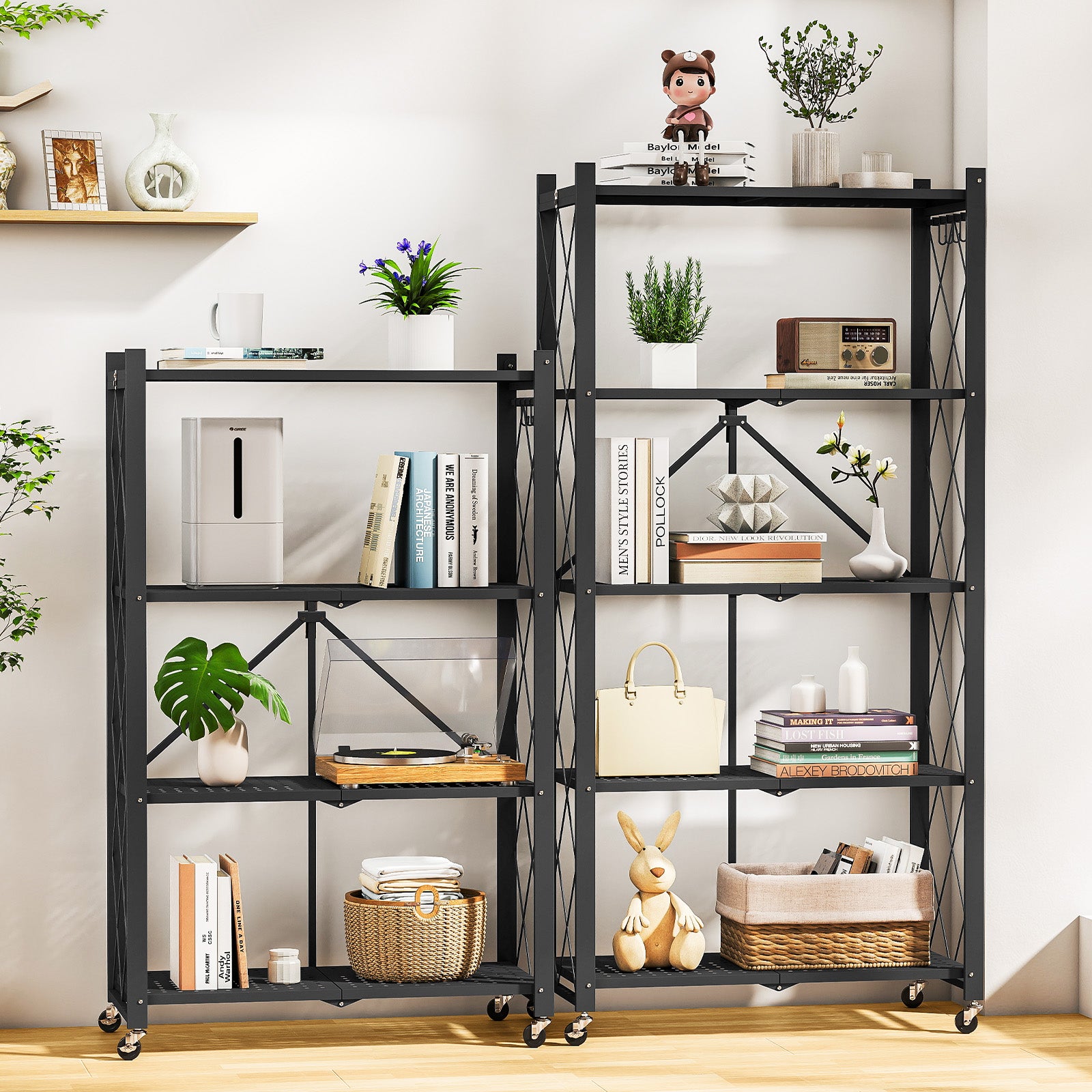 Vebreda 4-Tier Foldable Metal Storage Shelf with Wheels, No-Assembly Collapsible Shelving Unit, Heavy-Duty Rolling Organizer Rack for Kitchen, Garage, Pantry, and Office
