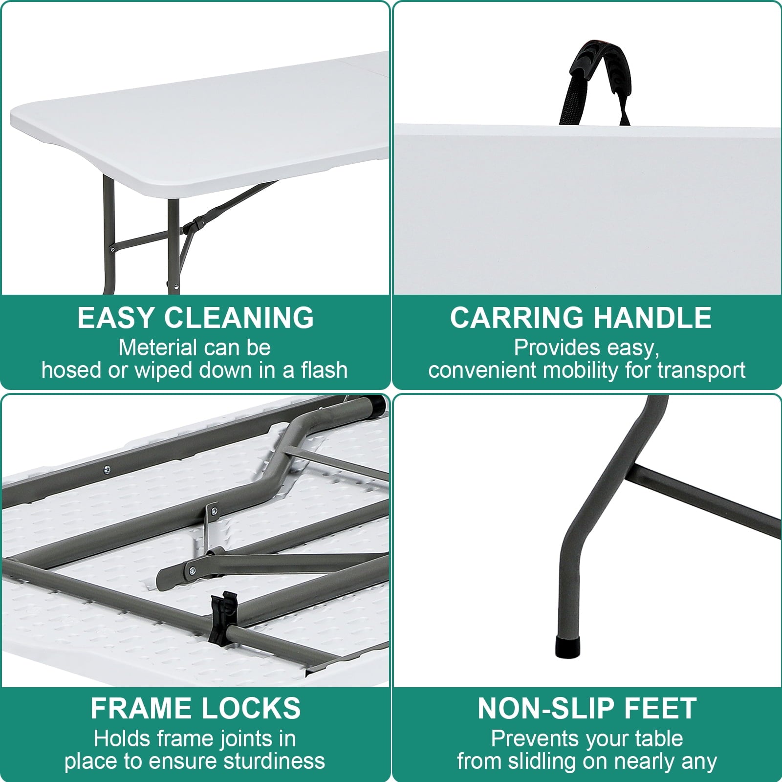 Vebreda Folding Table 6ft Plastic Folding Outdoor Table, White