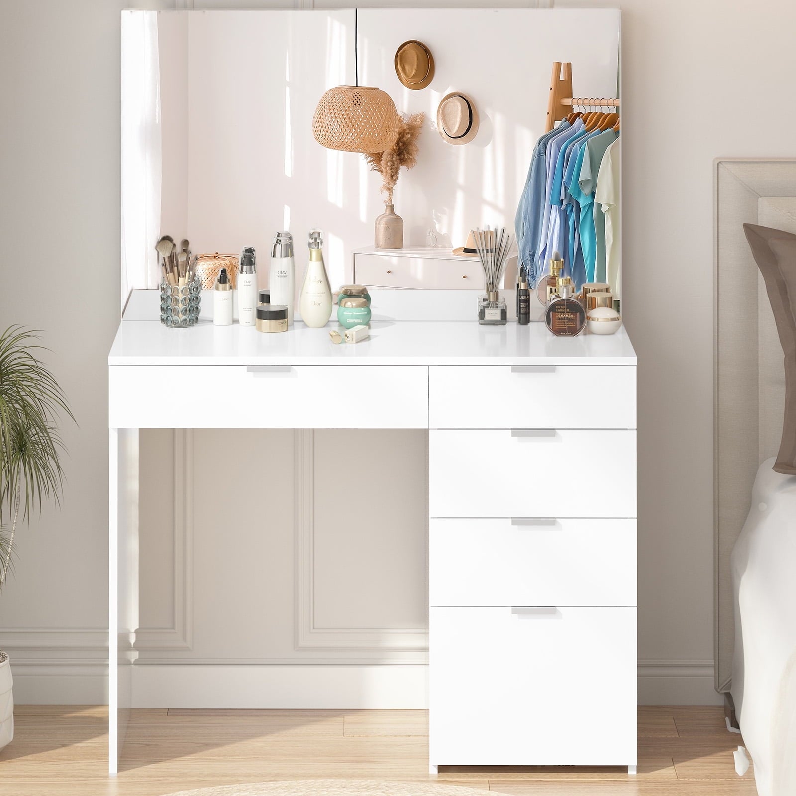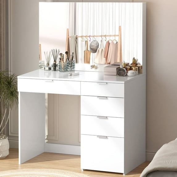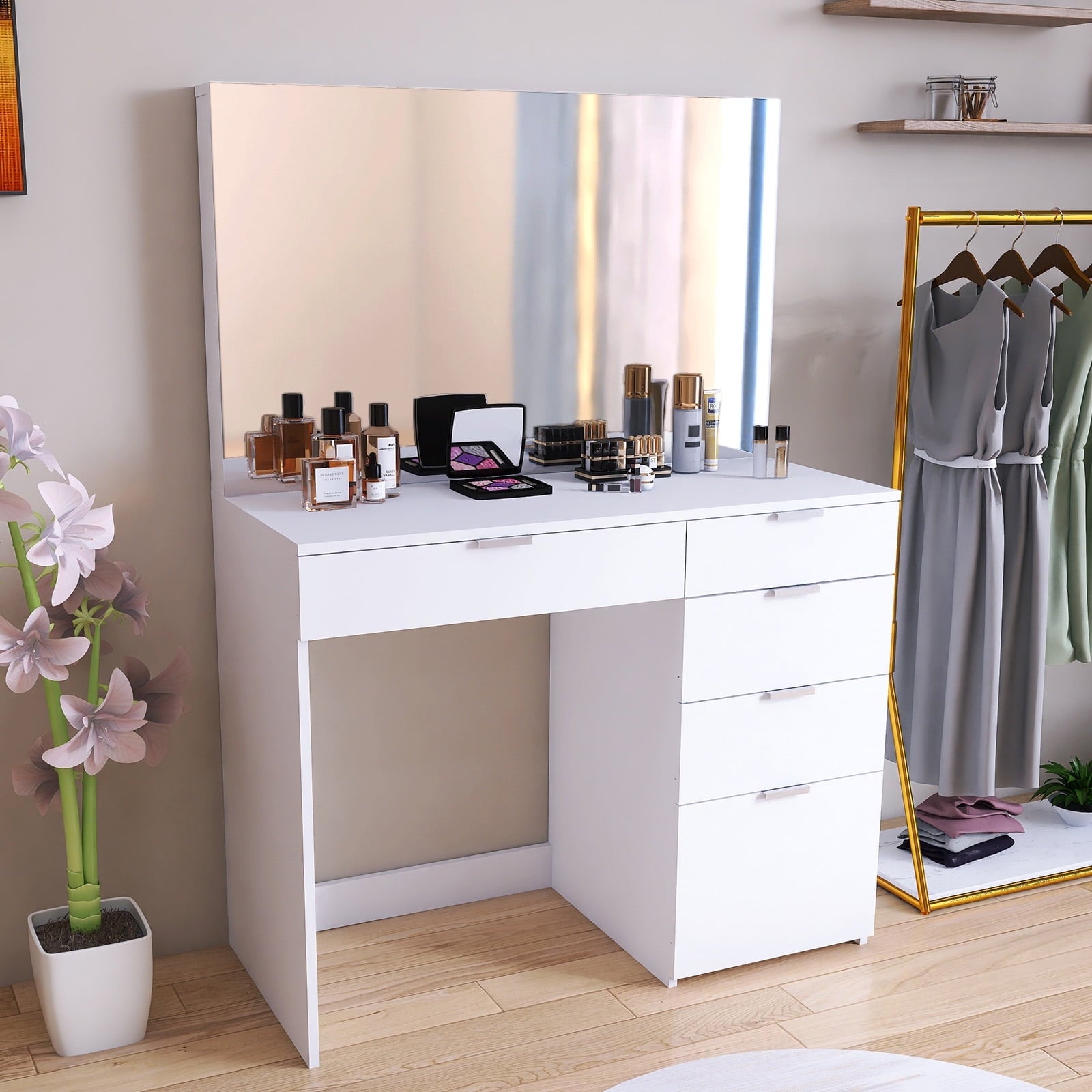 Vebreda Vanity Desk with Large Mirror and 5 Drawers for Bedroom, Dressing Room