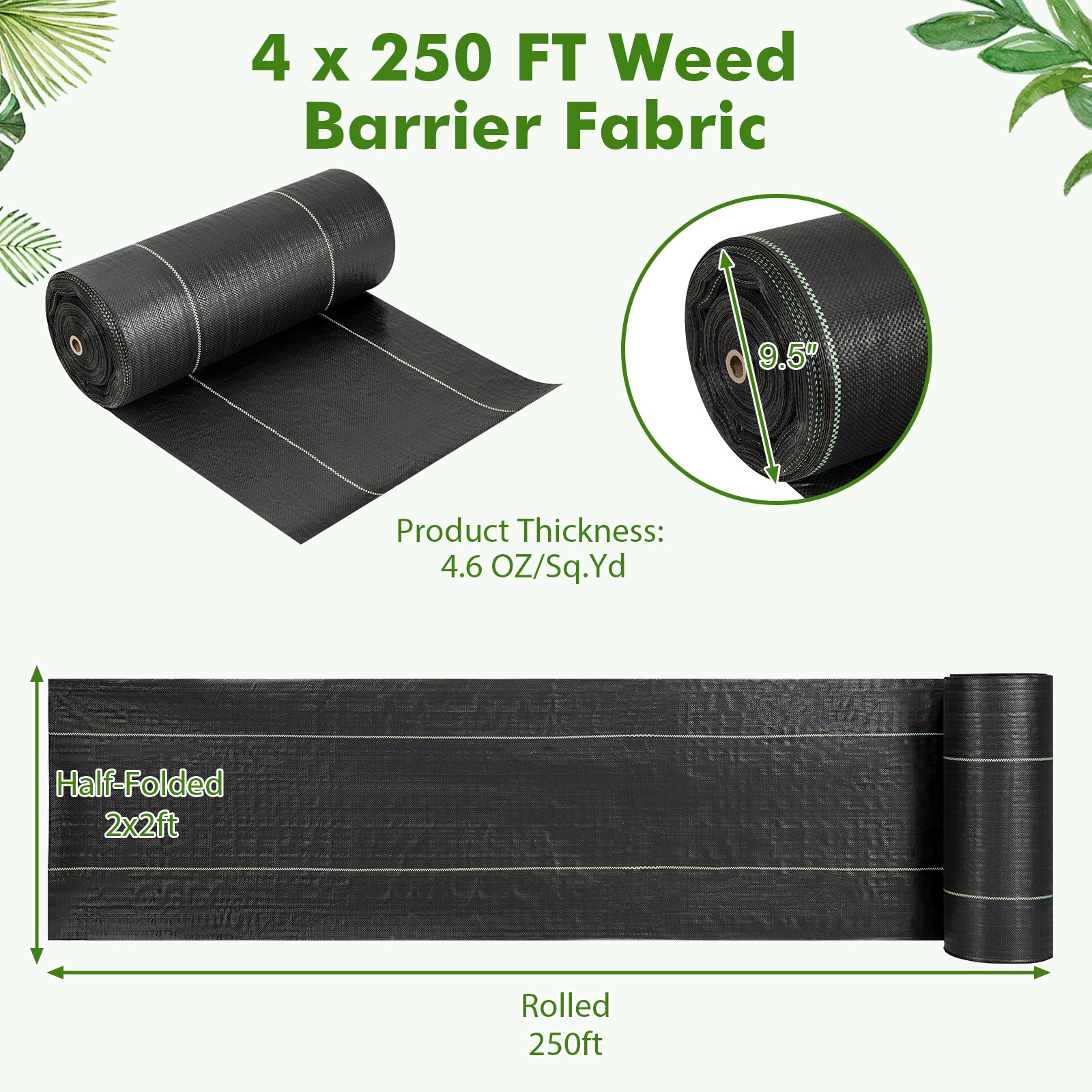 6.5 x 330/4 x 250/6 x 300 Feet Weed Barrier Landscape Fabric-4 ft