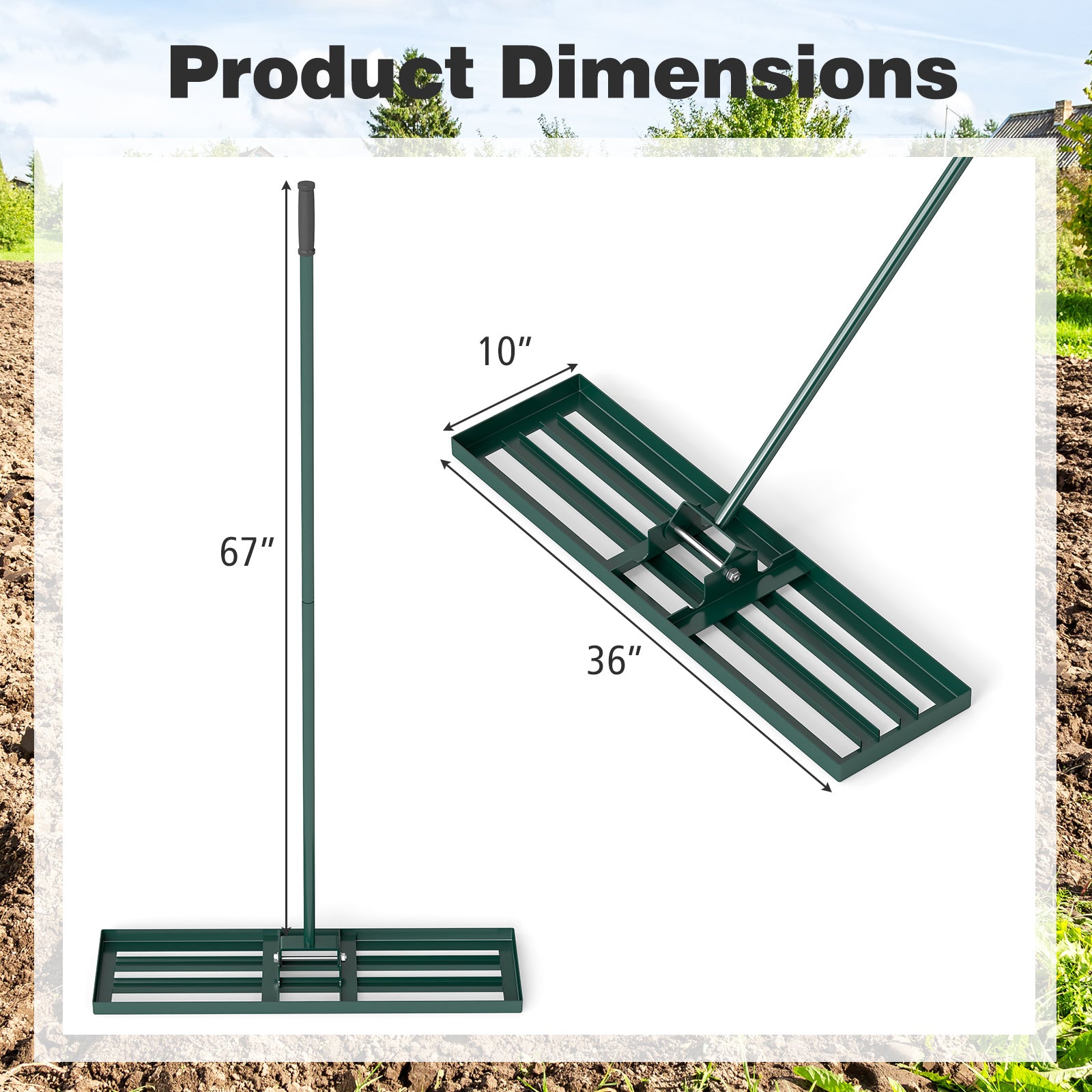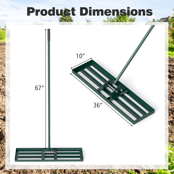 36 x 10 Inch Lawn Leveling Rake with Ergonomic Handle-Green