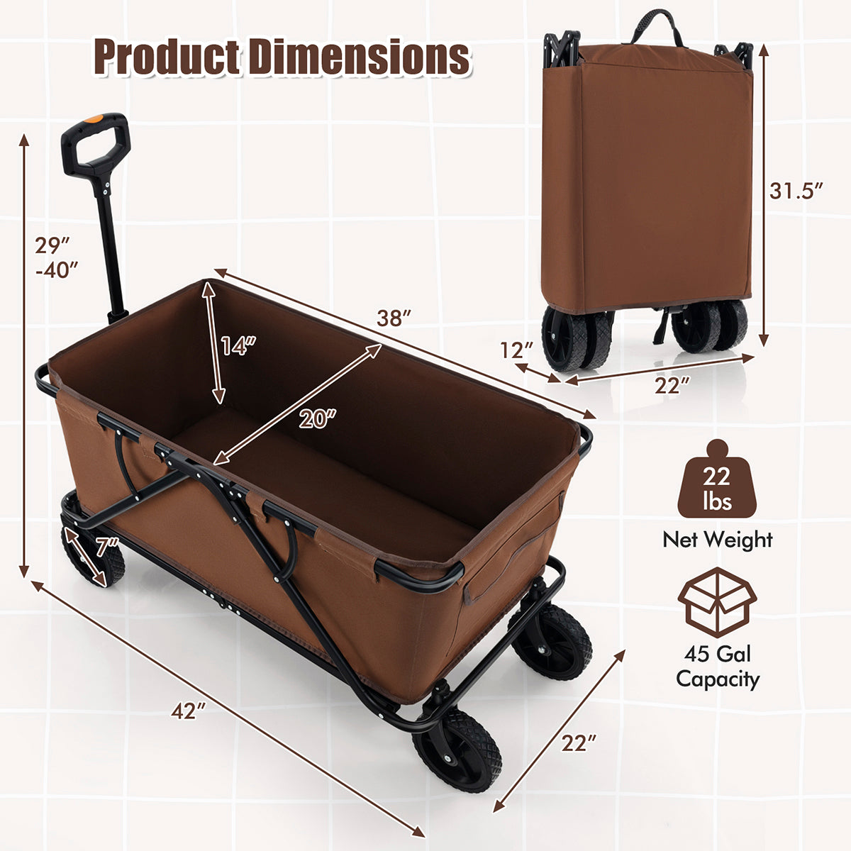 Collapsible Folding Wagon Cart with Adjustable Handlebar-Coffee