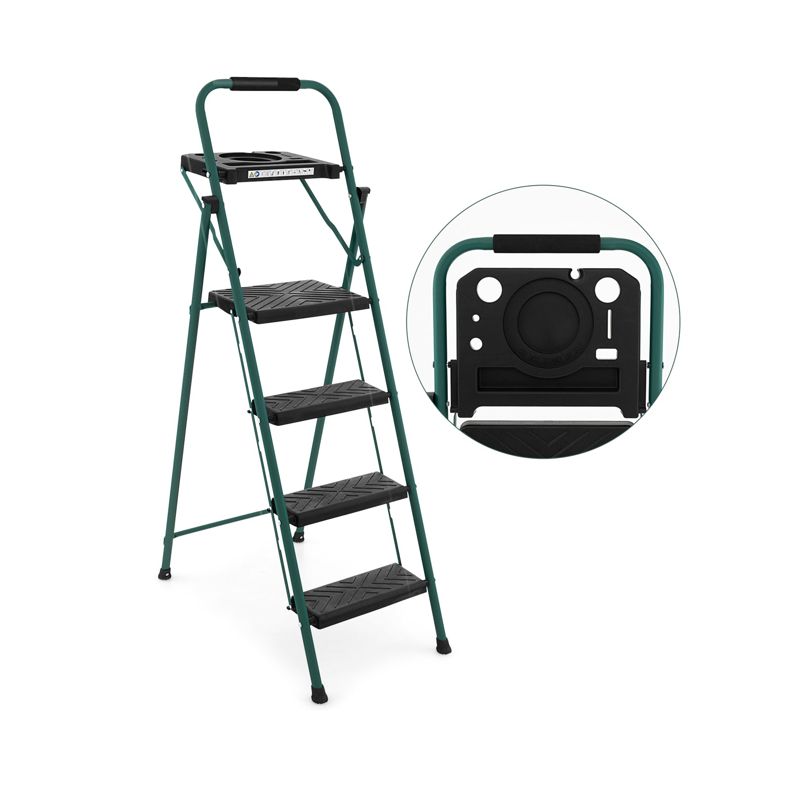 Folding 4-Step Ladder with Tool Tray Non-Slip Footpads and Pedals
