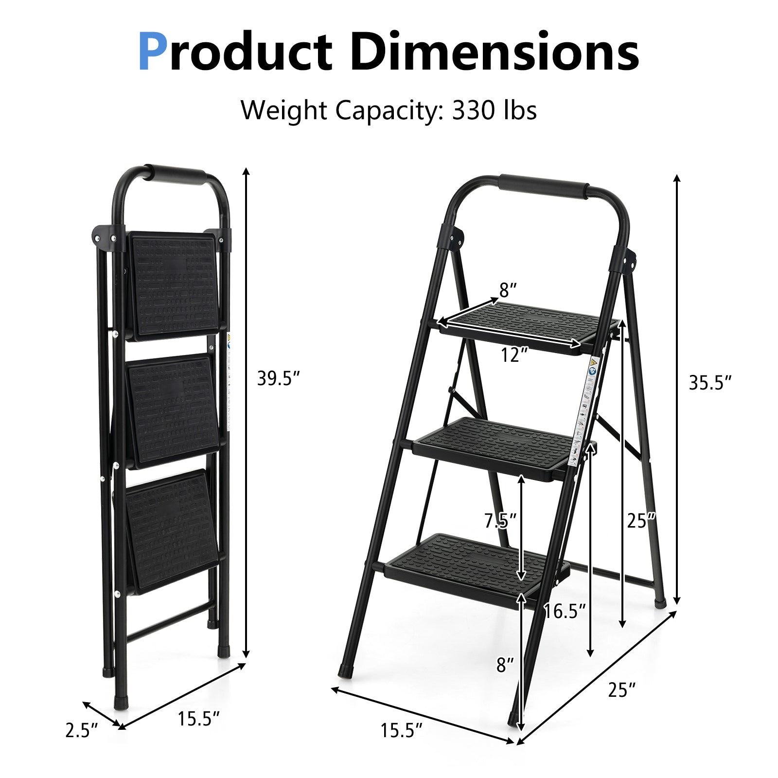 3-Step Ladder with Wide Anti-Slip Pedal-3-Step
