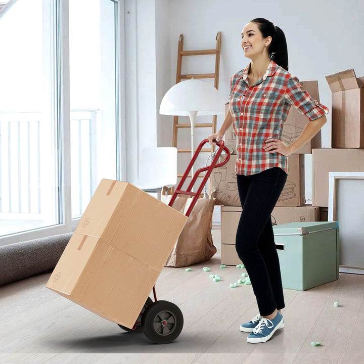 This strong, easy-to-use hand truck is ideal for moving boxes, furniture, or appliances. The P-handle design allows one-handed operation and easy tilting, while the foldable load area saves storage space. Double-bearing wheels roll smoothly across different terrains. Crafted from thick steel tubing for lasting durability, it¡¯s perfect for homes, warehouses, or delivery use. Assembly is simple with clear, step-by-step instructions.
