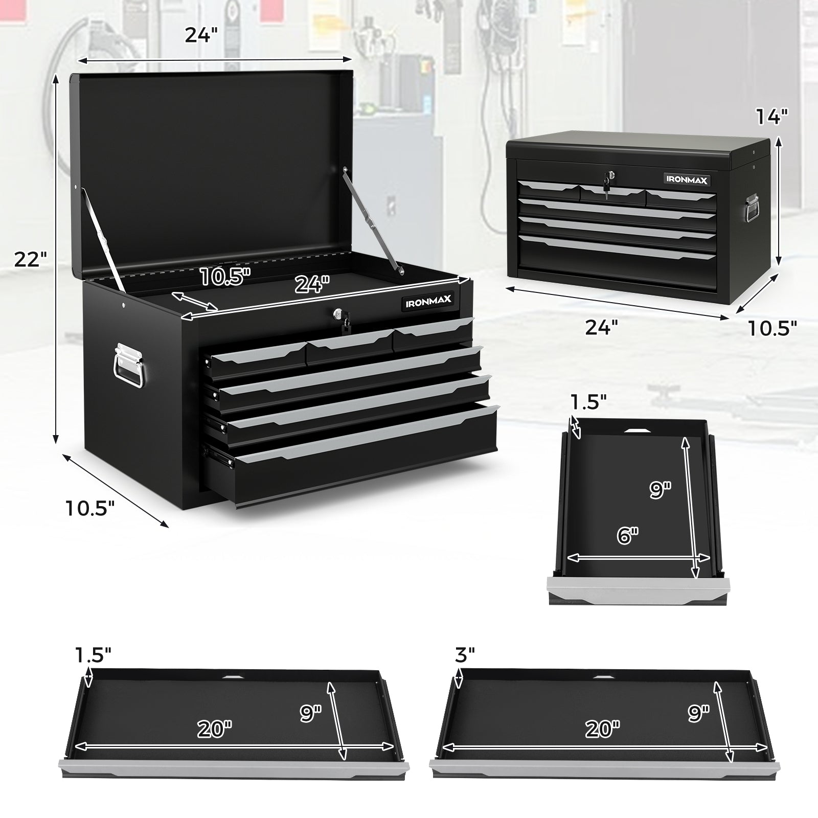 24 Inch Tool Chest Case with 6 Drawers and Top Storage for Garage Repair Shop & Warehouse-Black