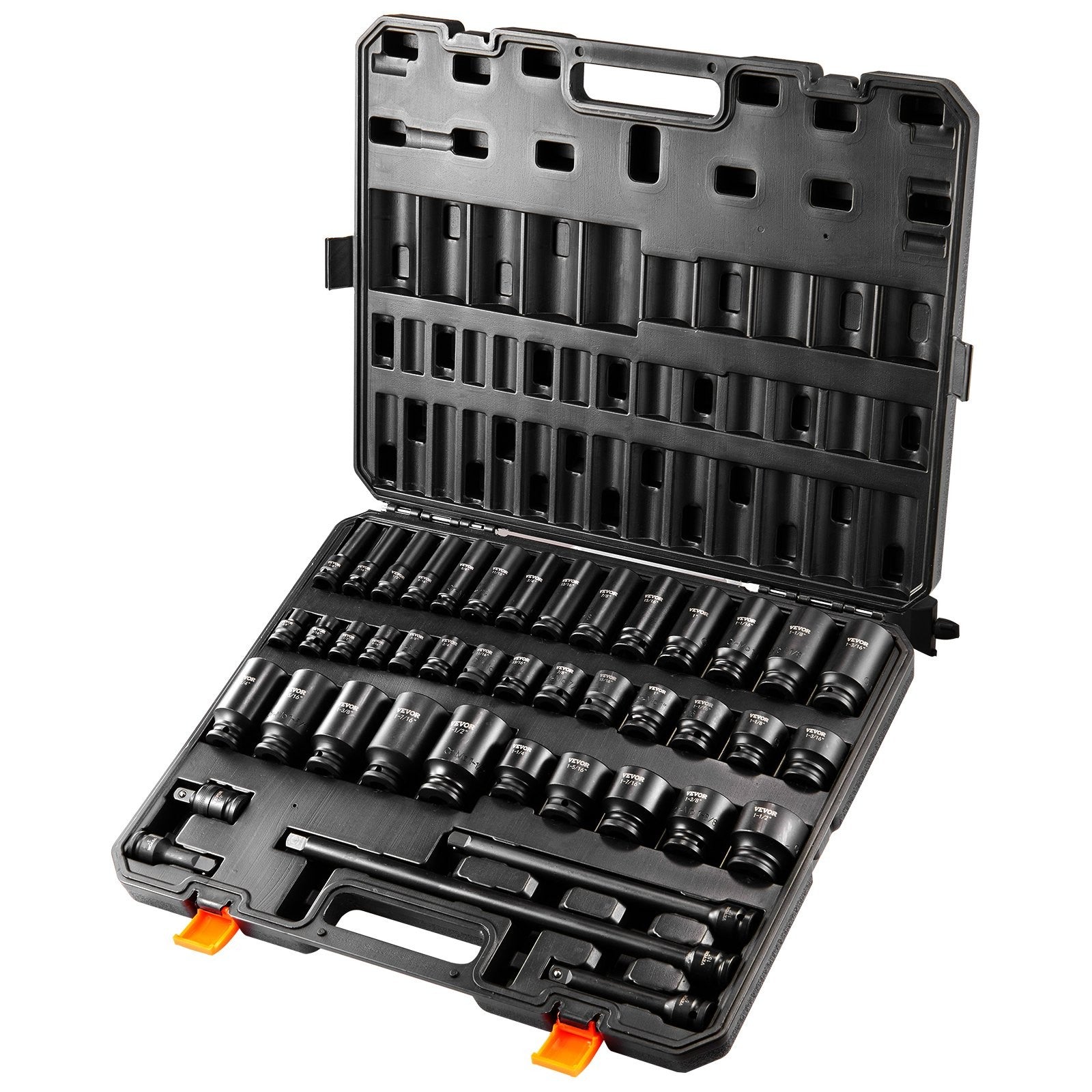 Impact Sockets Set 43pcs 6-Point 1/2in Drive Bit Ratchet Tool Kit Case