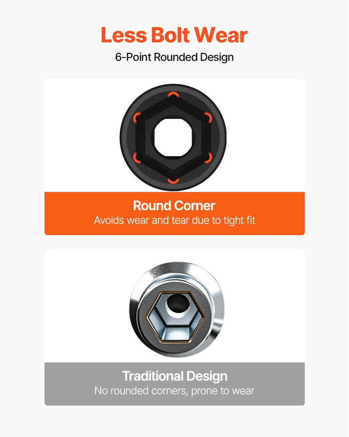 This 43-piece 1/2" impact socket set is engineered for professional performance and durability. Each socket is made from Cr-Mo industrial-grade alloy steel, treated with vacuum heat technology to achieve superior strength, impact resistance, and a polished, wear-resistant surface¡ªideal for demanding work environments. The high-torque hexagonal drive design minimizes stress on fasteners, preventing rounding and extending both tool and bolt life. Clear laser-etched size markings ensure quick and easy identification, even in low-light settings. Packaged in a sturdy metal toolbox, this set offers organized storage and convenient portability, keeping every piece secure and ready for use whenever needed.