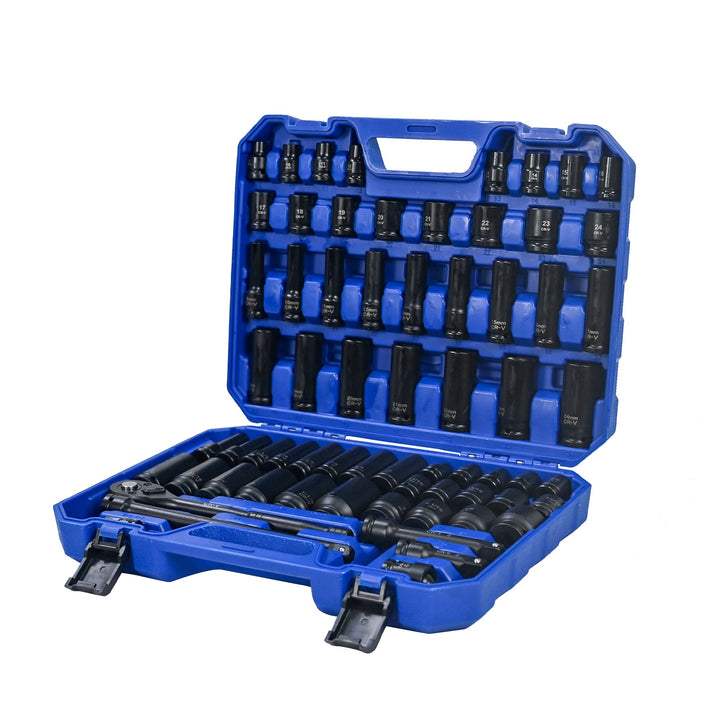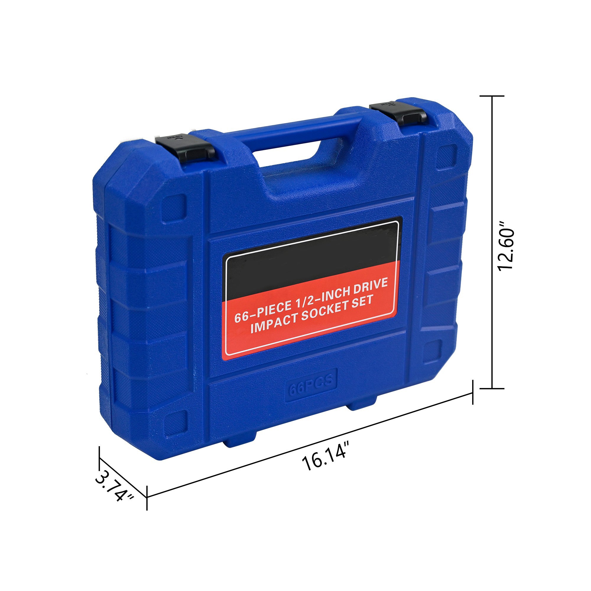 Air Tool and Accessories Kit, 66 Pieces, Long and Short Sets, Universal Short Sets, Extension Rods, Universal Connectors, Ratchet Wrenches, -Black,Blue