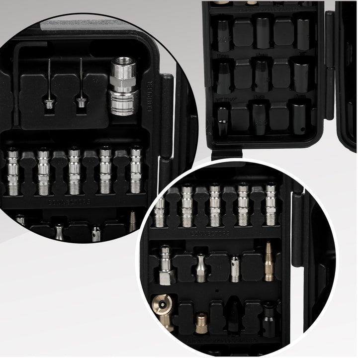 This premium air tool set is engineered for performance, durability, and versatility¡ªmaking it an essential addition to any workshop or garage. The kit includes four professional-grade air tools: a 1/2-inch drive impact wrench, air hammer, 1/2-inch drive ratchet wrench, and an air grinder with a 1/4-inch collet and sealed ball bearing design. Each tool is built for smooth operation and dependable power, ideal for a wide range of automotive, repair, and maintenance tasks. To help you handle virtually any job, the set also comes with a comprehensive 71-piece accessory kit featuring hose fittings and couplers, hammer chisels, grinding stones, impact sockets, and more. Everything you need is right at your fingertips. Built to withstand heavy use, these tools feature heat-treated cylinders, rugged aluminum housings, and protective rubber scuff guards for long-lasting durability and reliability. Whether you¡¯re a professional mechanic or a serious DIY enthusiast, this set is designed to deliver consistent performance for years to come. For added convenience, the kit includes a heavy-duty blow-molded carrying case that keeps every tool and accessory neatly organized and protected. The sturdy case ensures safe transport, easy storage, and quick access, keeping your tools in pristine condition and ready for the next project.
